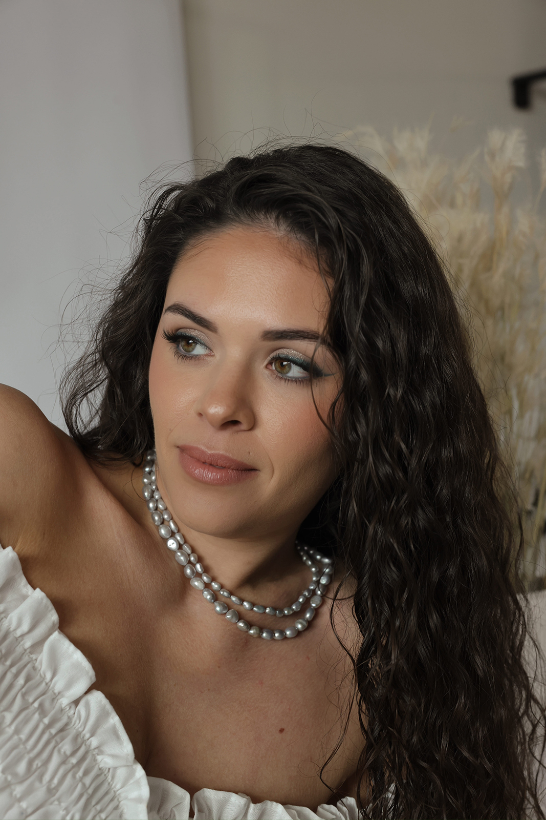 Elaborado con perlas cultivadas de origen asiático en un delicado tono gris, de 11 mm, este collar ofrece una estética serena y luminosa. Su diseño equilibrado lo convierte en una pieza refinada y versátil, ideal para acompañar con sofisticación tanto looks diarios como estilismos más especiales.