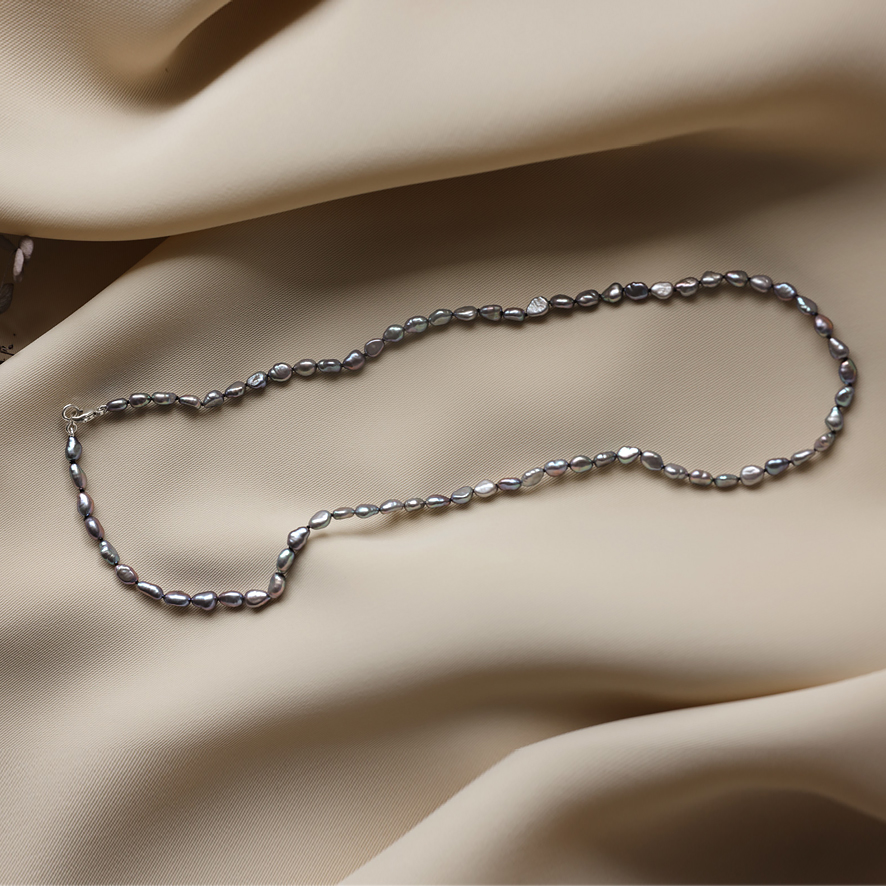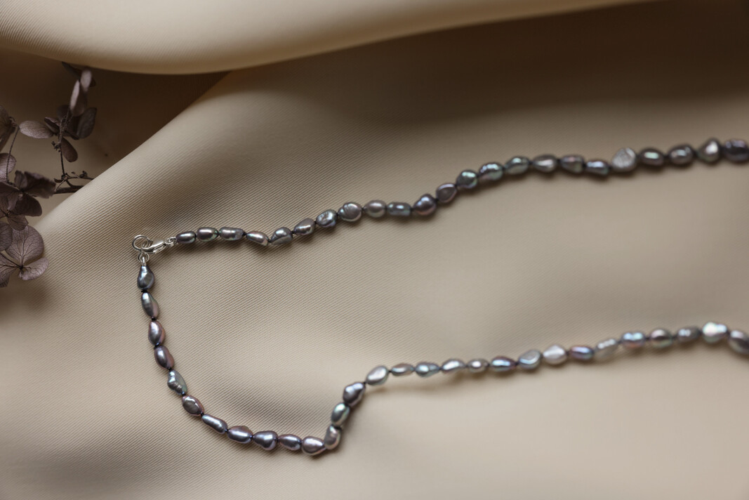 Elaborado con perlas cultivadas de origen asiático en tono peacock, este collar