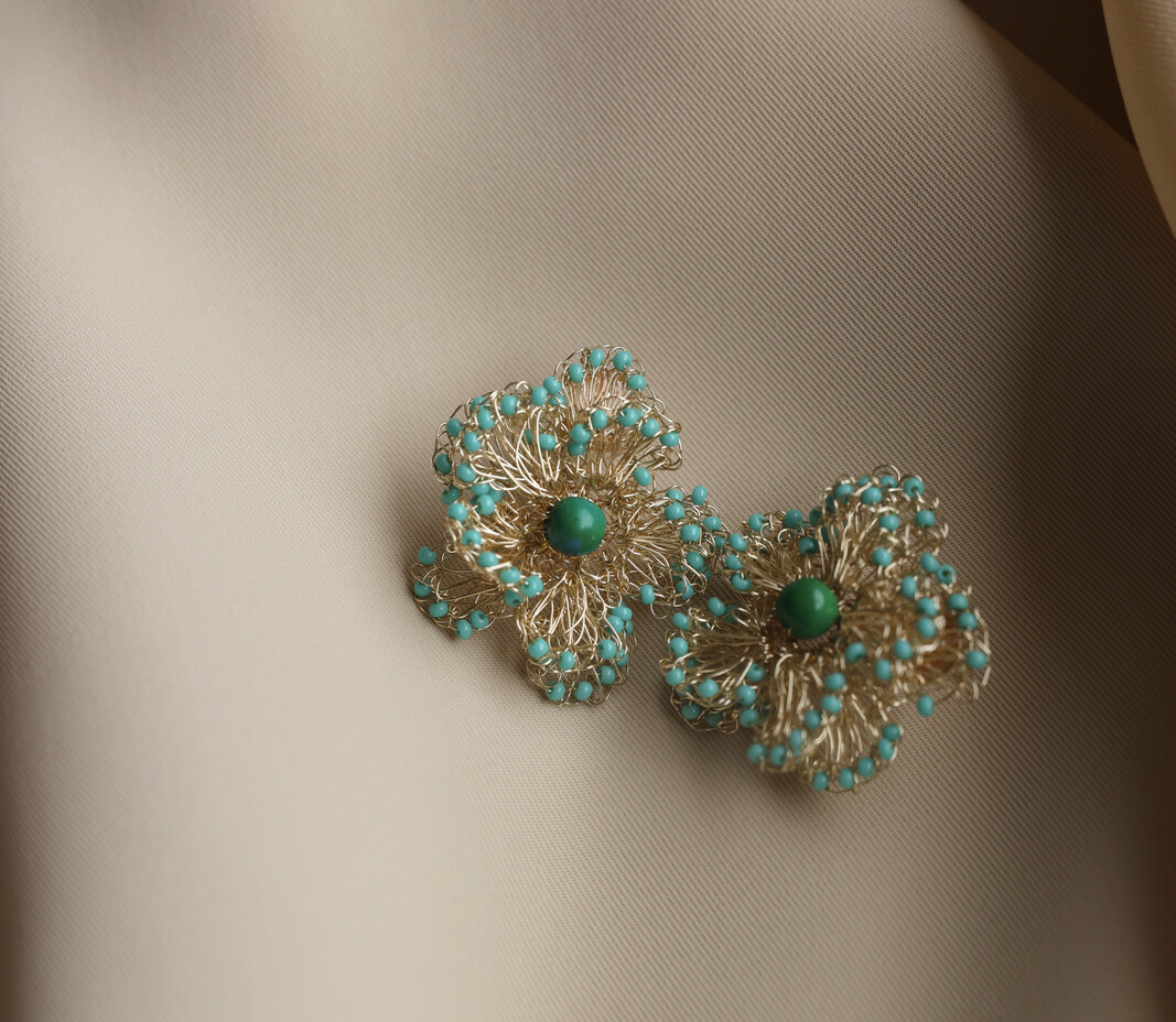 chapado en oro y delicadas cuentas Miyuki, destacan por su diseño detallado, su movimiento y su carácter especial. A pesar de su tamaño, son sorprendentemente