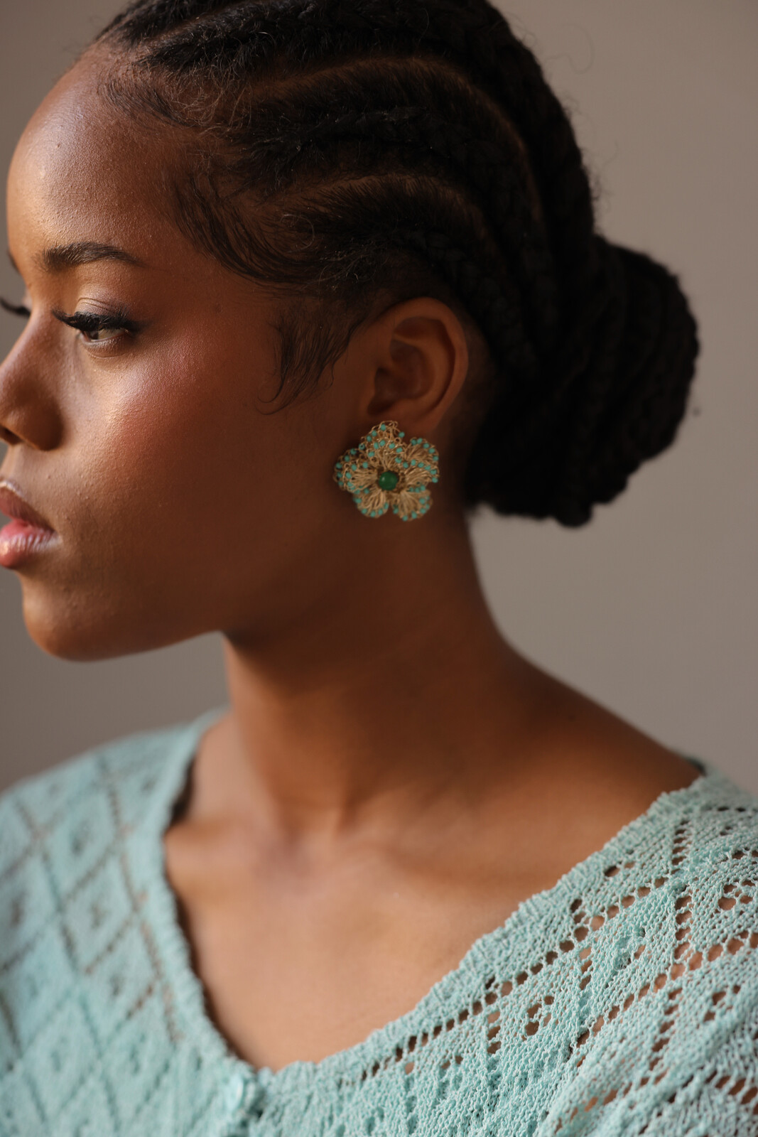 Pendientes elaborados artesanalmente en México, donde cada pieza se teje cuidadosamente a mano, haciendo que cada par sea único. Realizados con hilo