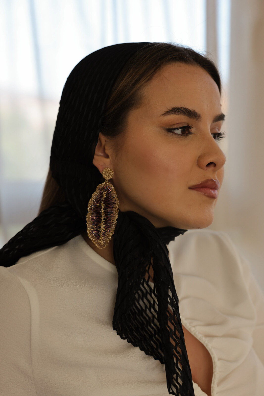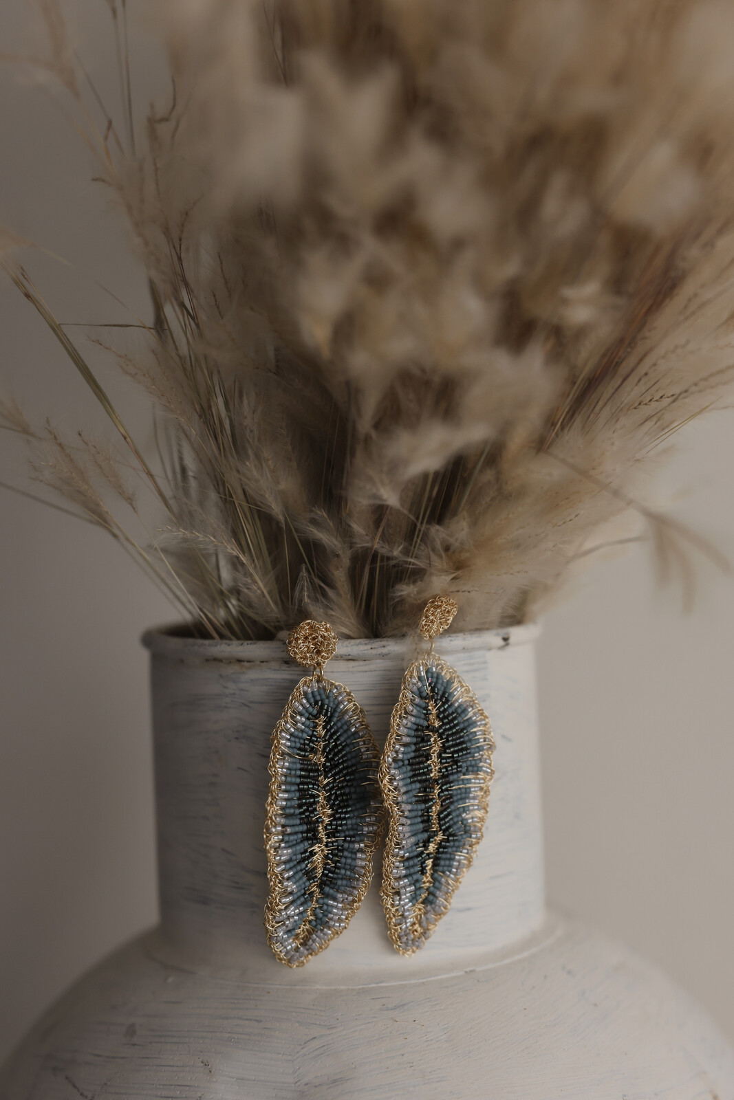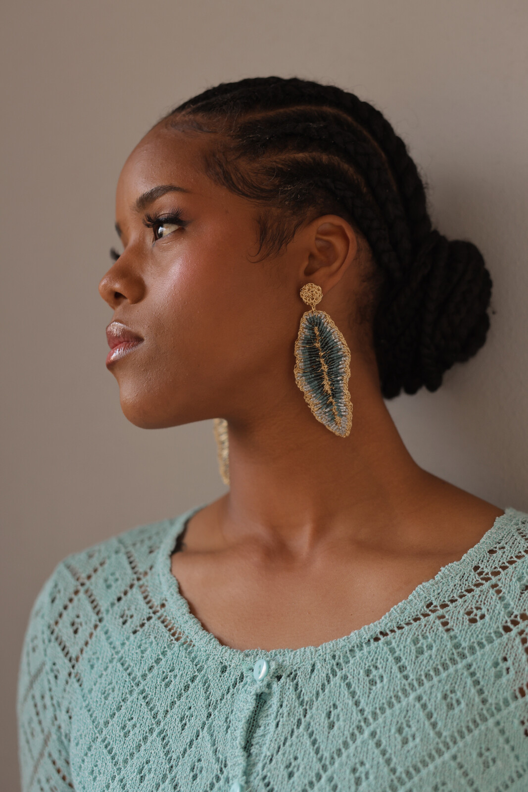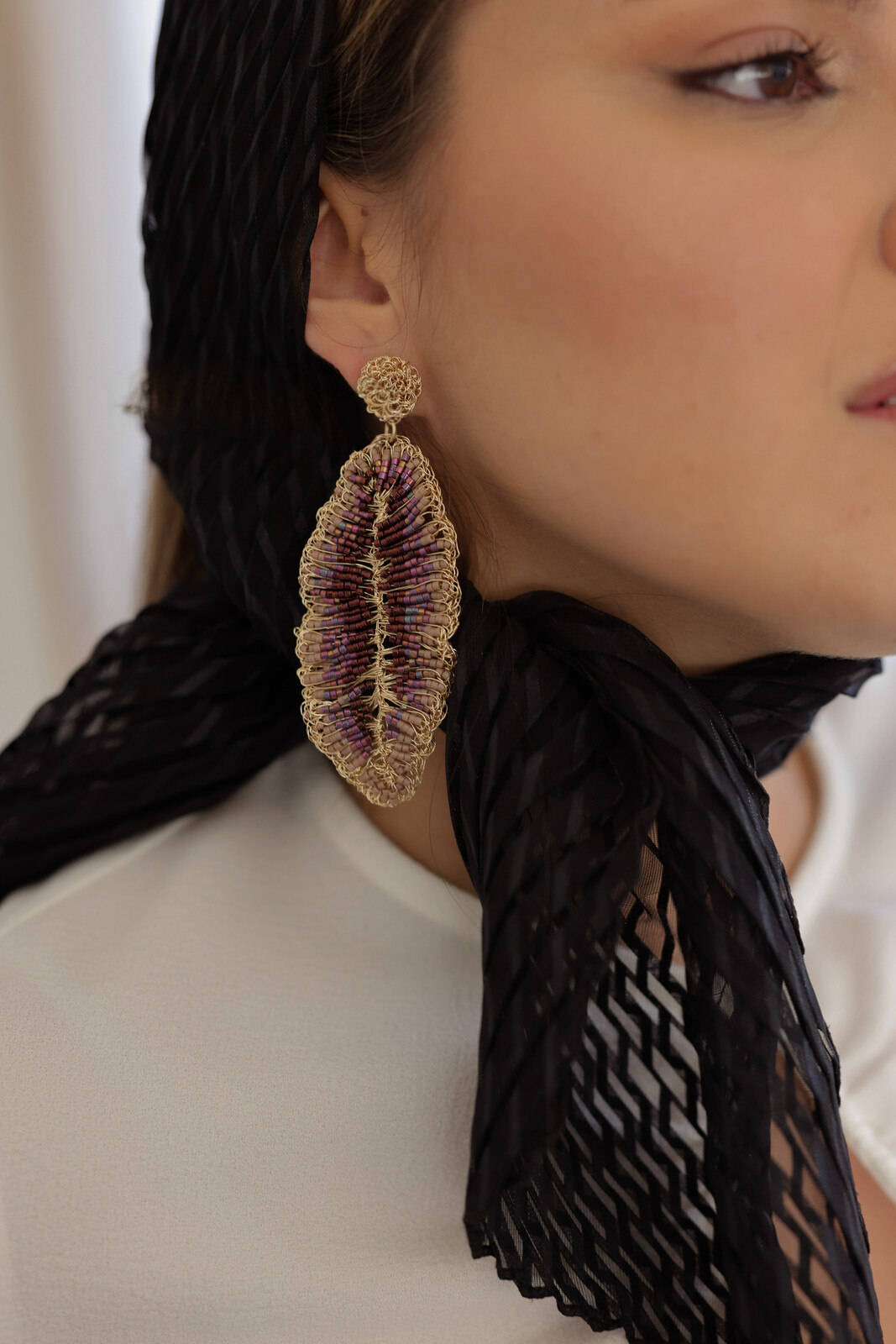 Pendientes elaborados artesanalmente en México, donde cada pieza se teje cuidadosamente a mano, haciendo que cada par sea único. Realizados con hilo
