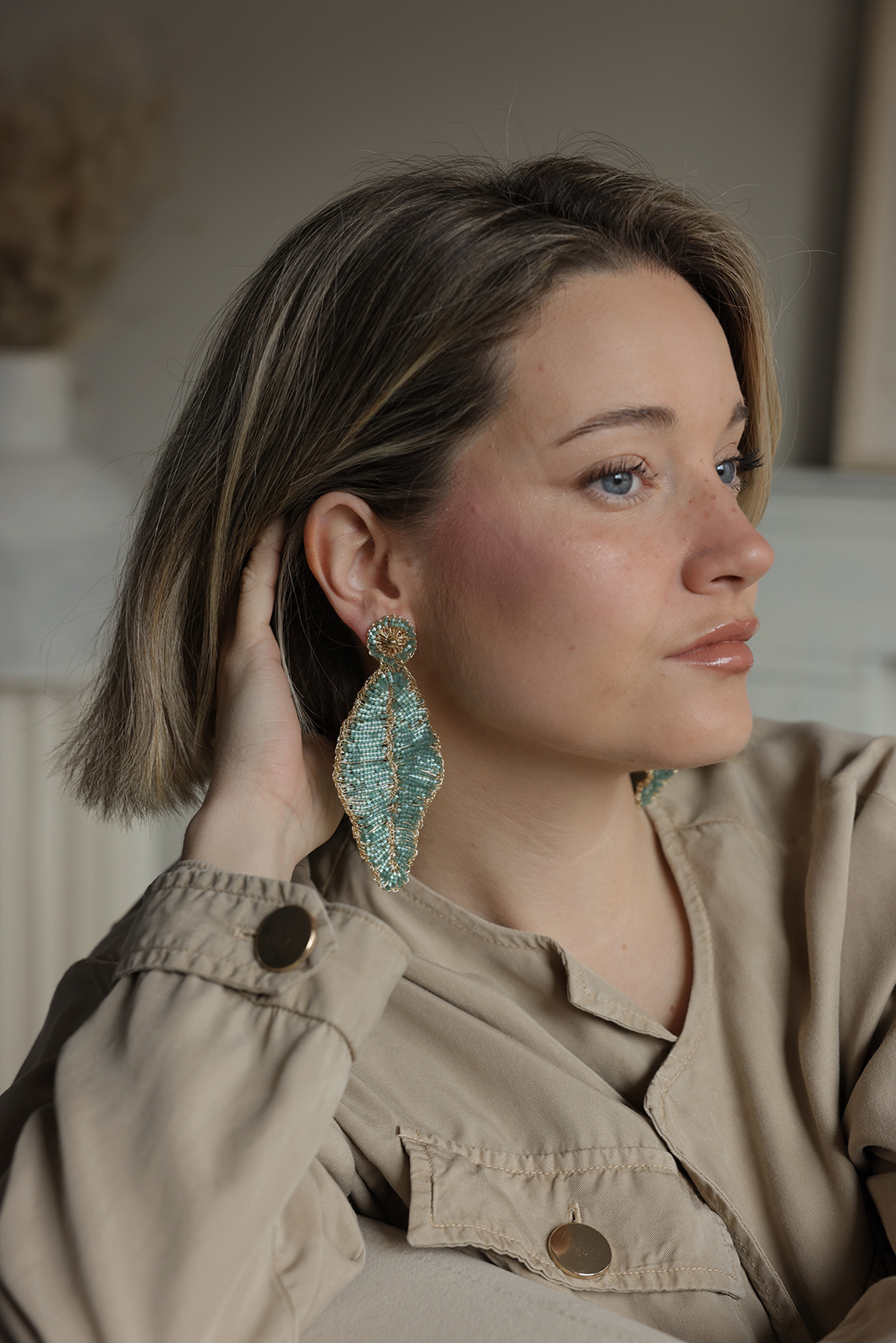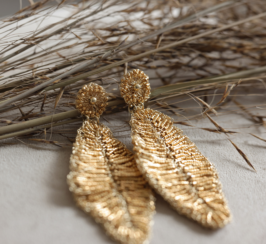 chapado en oro y delicadas cuentas Miyuki, destacan por su diseño detallado, su movimiento y su carácter especial. A pesar de su tamaño, son sorprendentemente