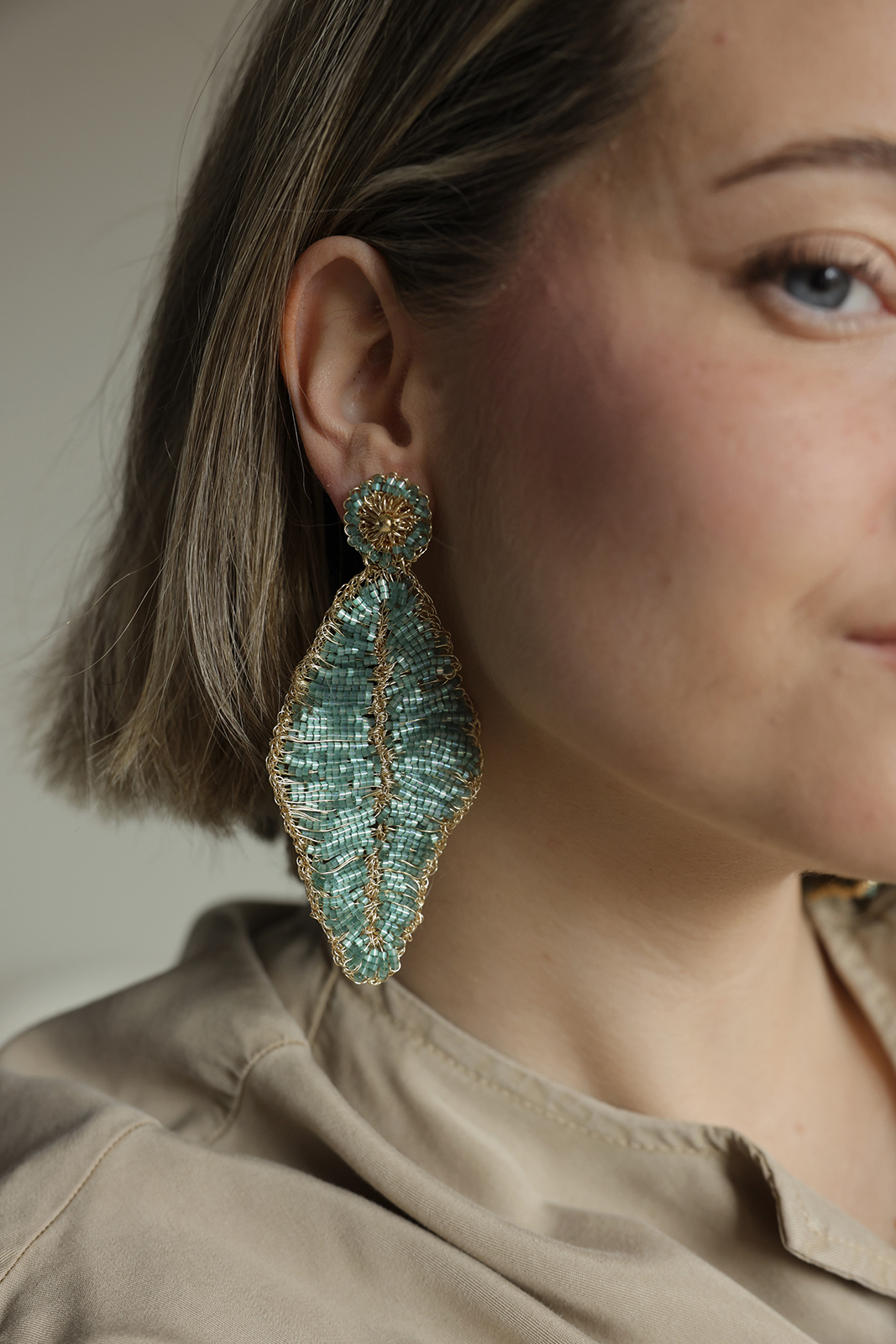 Pendientes elaborados artesanalmente en México, donde cada pieza se teje cuidadosamente a mano, haciendo que cada par sea único. Realizados con hilo